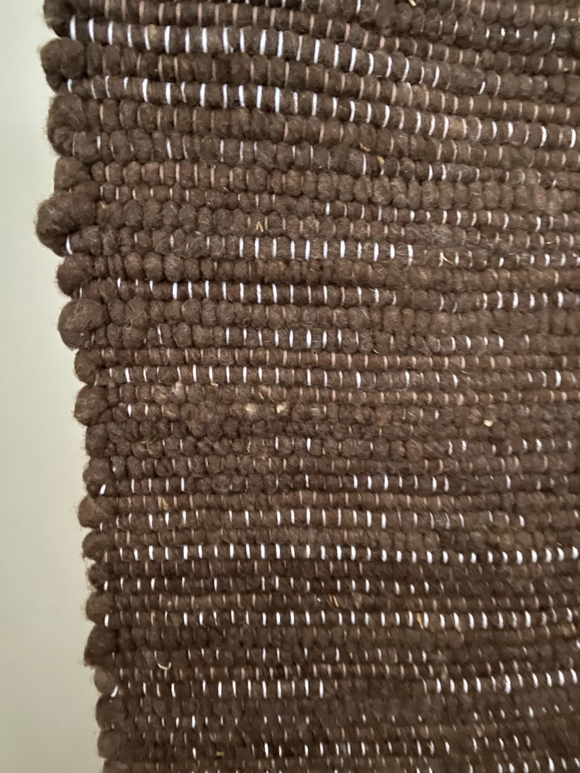 24 x 24.5 Wool Rug, made from the wool of our sheep, in the natural colors of the fleeces. Shorn in the spring and graze our pastures all season, this handmade piece of functional art will be the coziest thing for your home.
